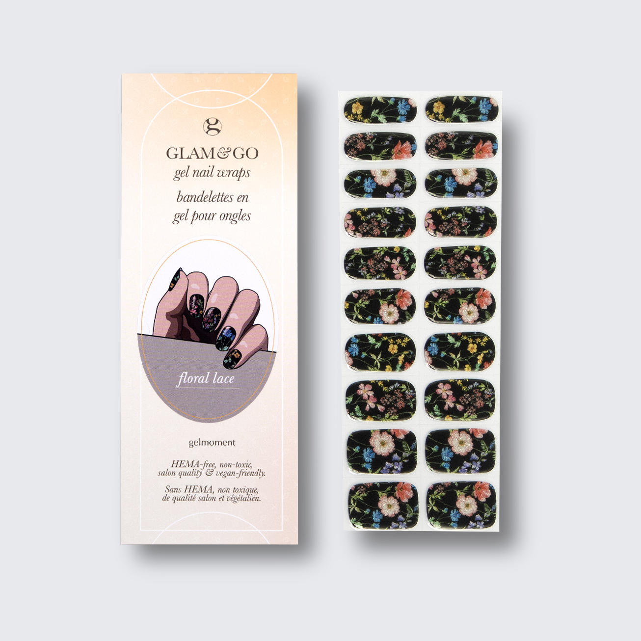 Plus, not only do GLAM & GO gel nail wraps provide the same glossy finish you know and love from our regular gel polish, but they are also HEMA FREE and have a wear time of up to 14+ days.